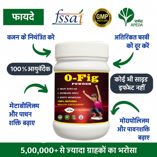 दोस्तों, सच तो ये है कि आज बाजार में ऐसी सैंकड़ों प्रोडक्ट्स हैं जो वज़न घटाने के क्षेत्र में क्रांति लाने का दावा करते हैं, लेकिन O-Fig Powder की प्रभावकारिता और सुरक्षा 100% वैज्ञानिक रूप से साबित है।